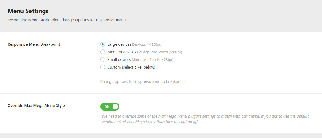 Q3: How to set responsive menu breakpoint (from which window size the menu will become responsive) ?