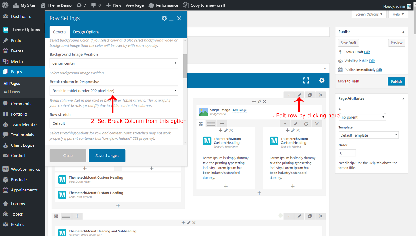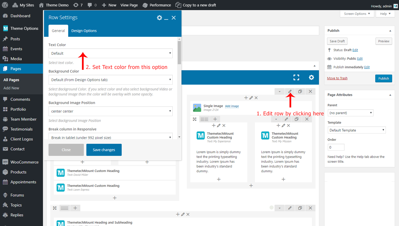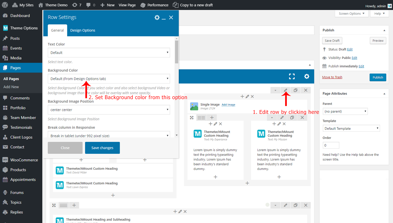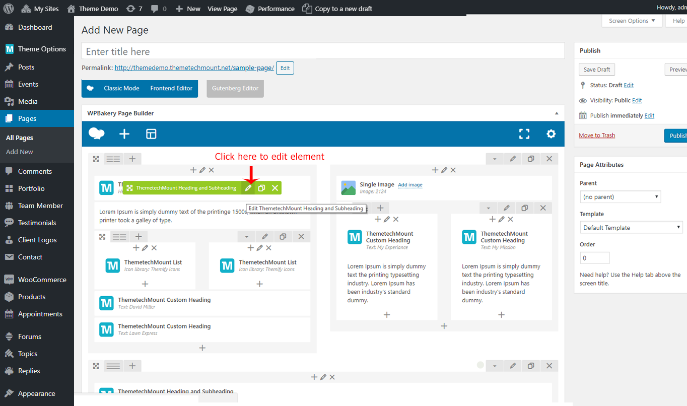 Edit the page you like to modify. We will edit the ThemetechMount Service box element in below screenshot, but these option will be available for each Visual Composer element