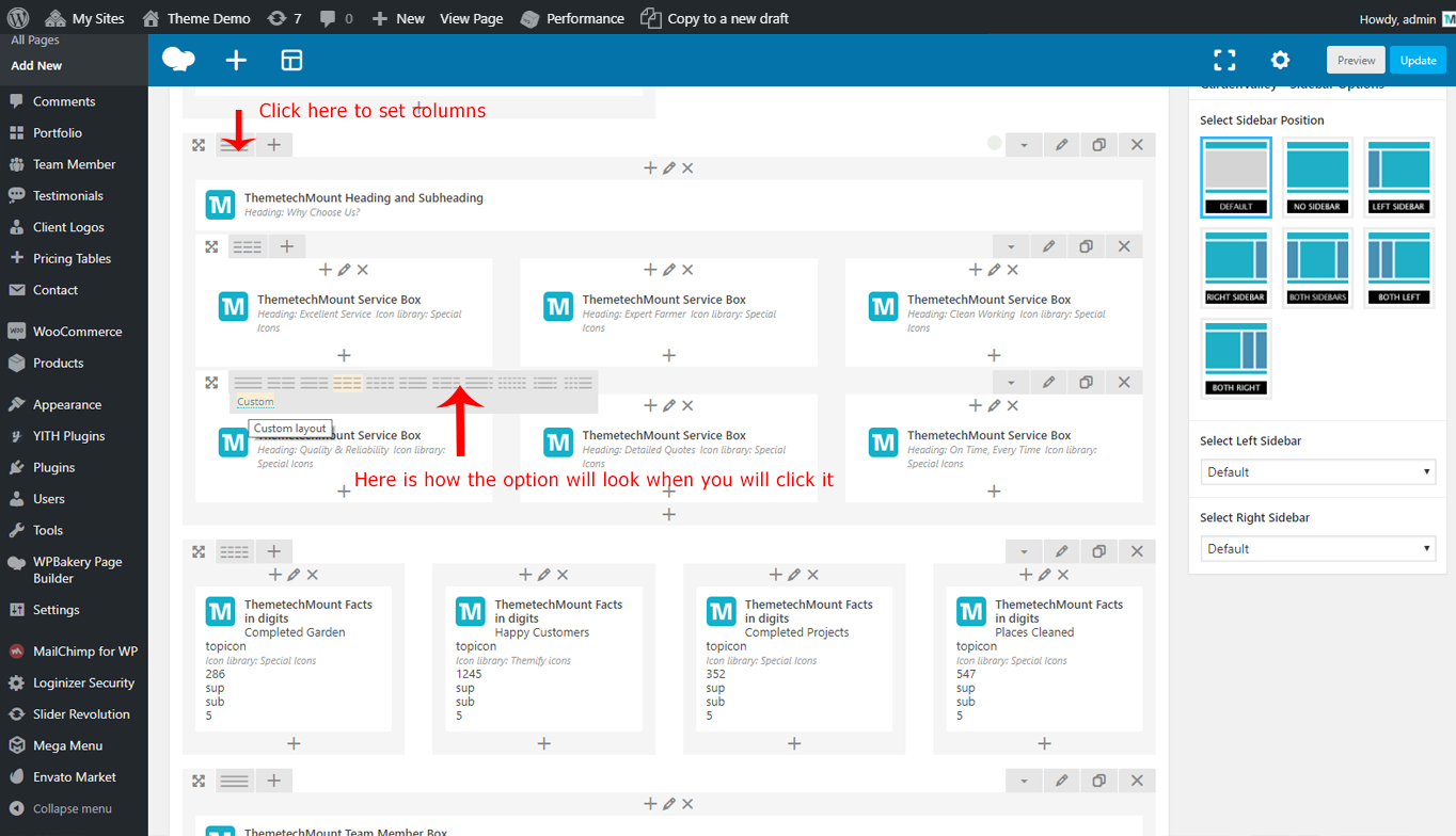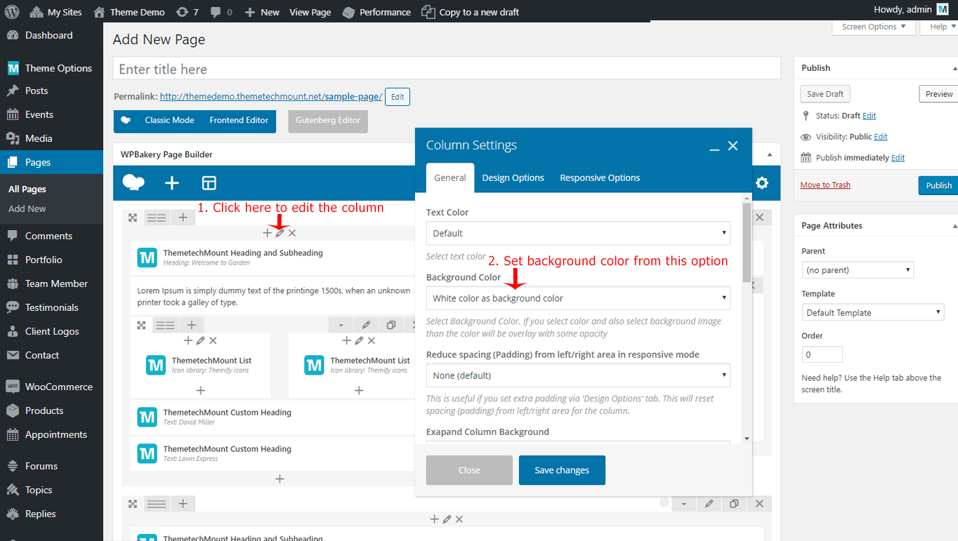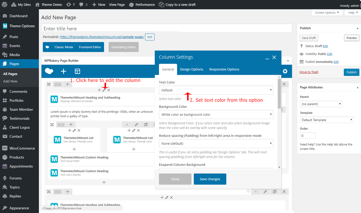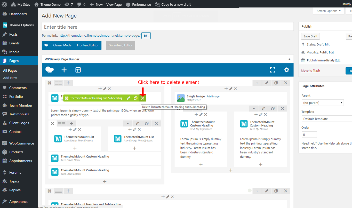 Edit the page you like to modify. We will edit the ThemetechMount Service box element in below screenshot, but these option will be available for each Visual Composer element