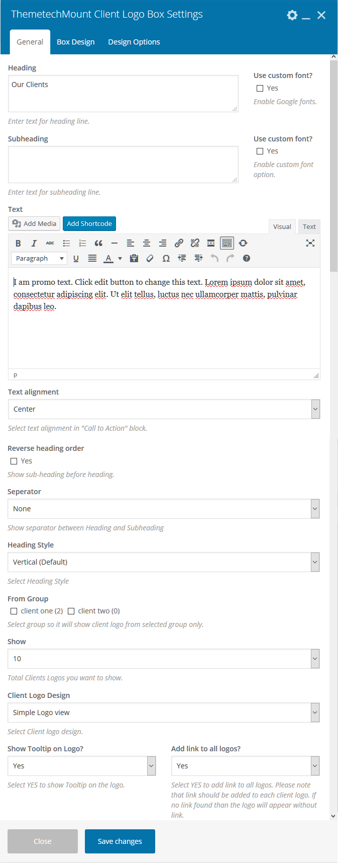Now you will see options for the Client Logo box. Fill all options as you need and click on "Save" button to add :
