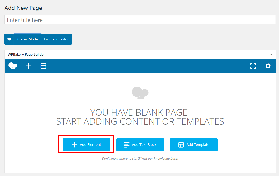Now we need to create a new page to show our Testimonials. The option is included in "Visual Composer" plugin (Make sure you installed Visual Composer plugin). Go to Pages >> Add New and click on "Add element" button: