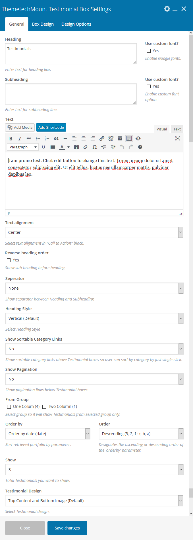 Now you will see options for the Testimonial area. Just modify the option are your requirements and click on "Save" button to apply the changes: