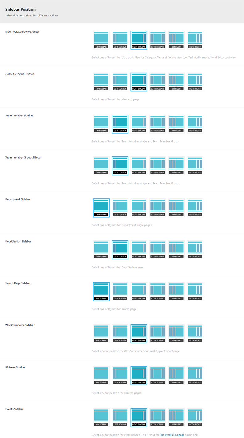 - Right Sidebar For Team Member: You can add Widgets that you want to display as Right sidebar for single Team Member that you created from Team Member section.