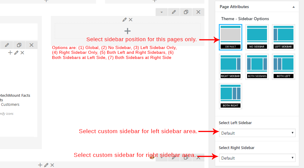 - Left Sidebar For Pages: You can add Widgets that you want to display as Left sidebar for pages that you created using Pages section.